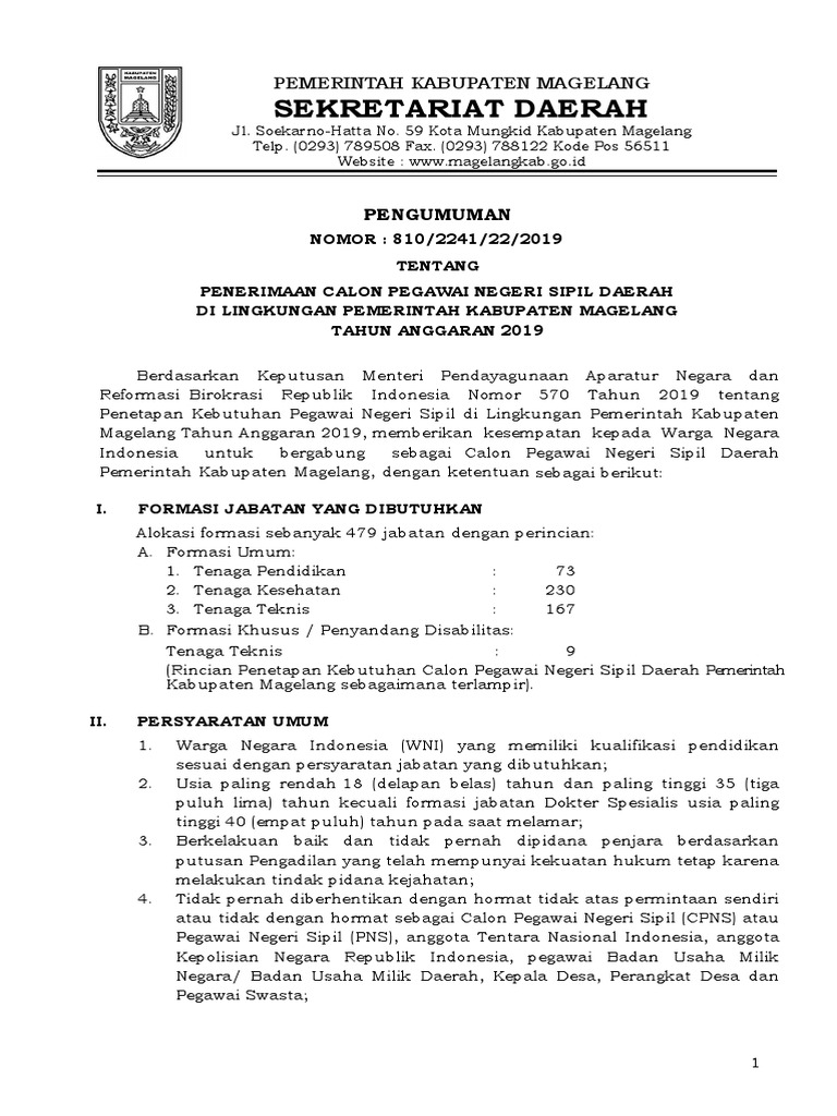 Lowongan cpns kabupaten (pemkab) magelang 2019.